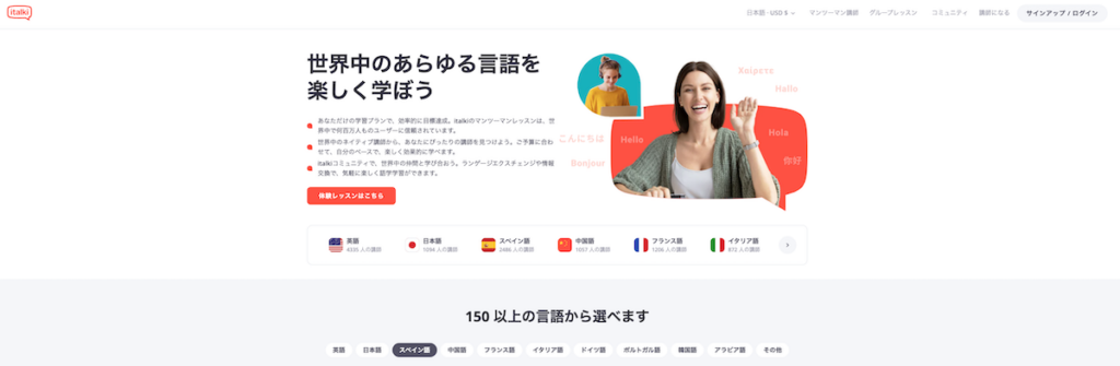英語・スペイン語・フランス語などを学ぶ予定がある方は、italkiに先生が揃っている可能性が高いです。