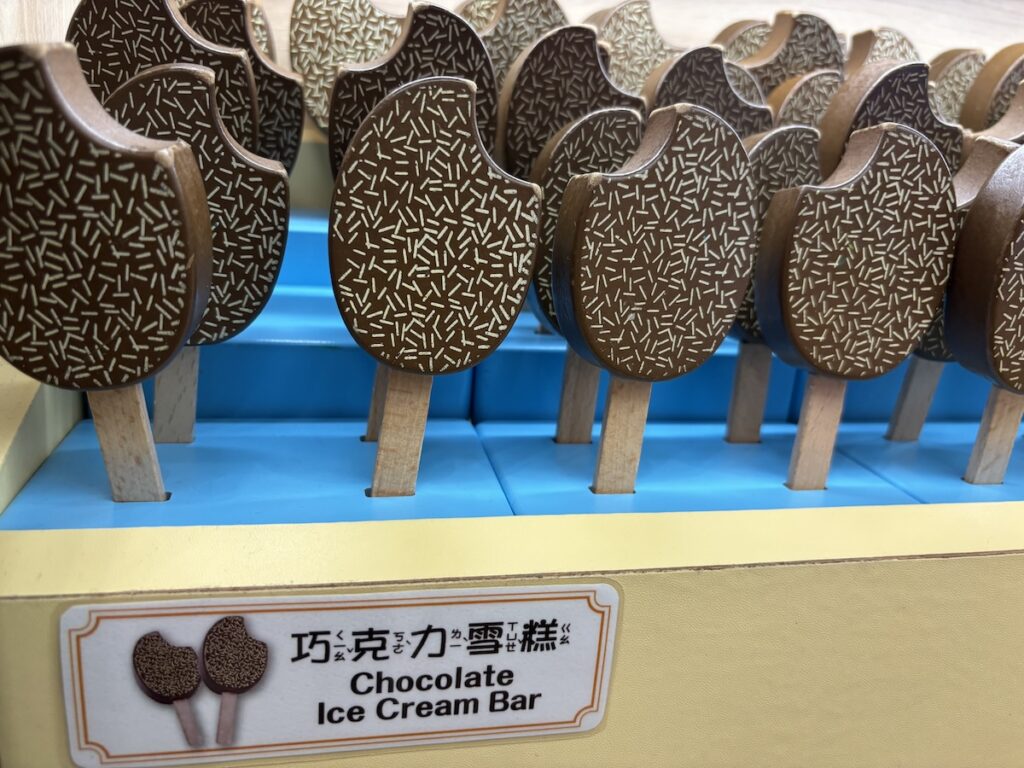 おままごとコーナーにあったチョコアイスにはきちんとボポモフォが書かれていて、子供でも読めるようになっていました。