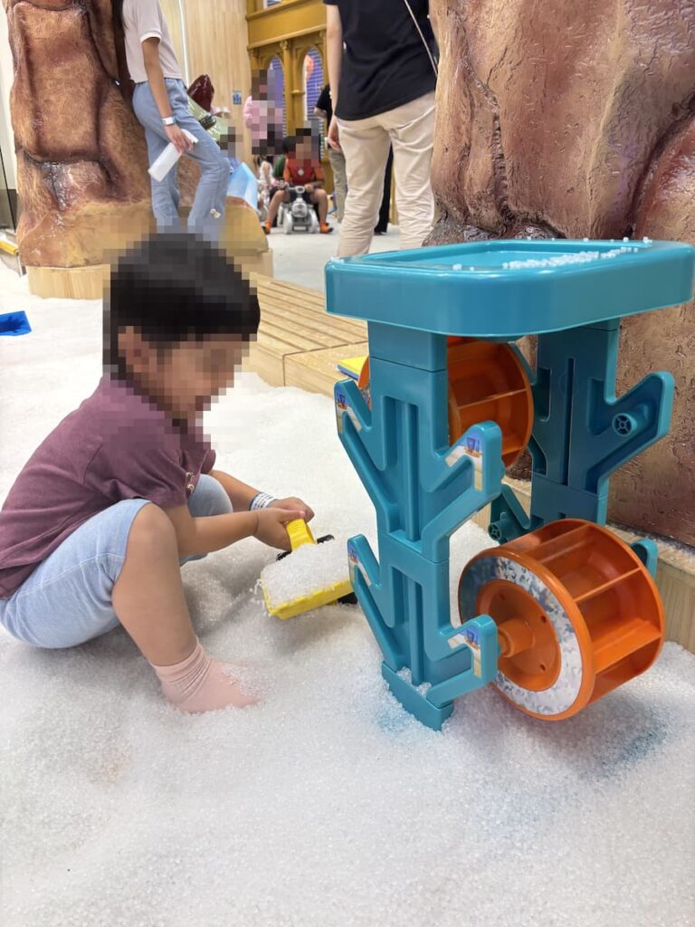 息子は特におままごとコーナーと砂場エリアから離れず、途中で晩御飯を食べに行ったりしながら、合計で5時間くらい遊んでいたと思います。