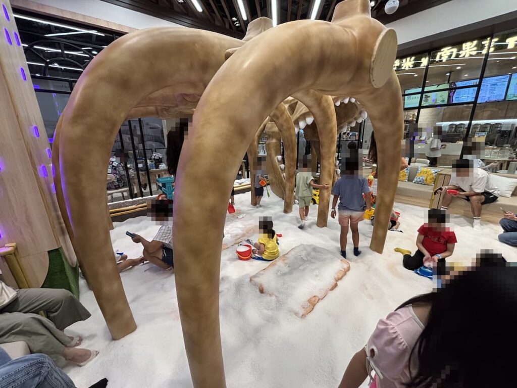 この砂場は「砂」ではなく小さなプラスチック粒(塑粒)でできており、洋服が汚れないのが特徴です。